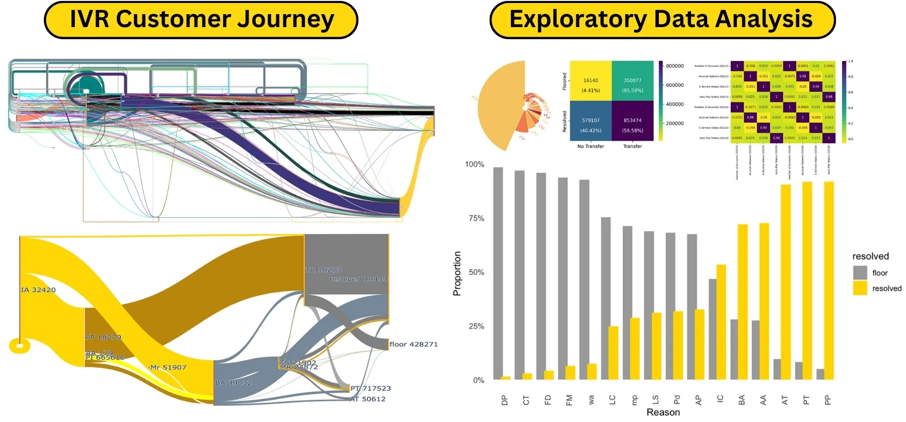 The Illinois Department of Statistics partnerted with Synchrony Financial to host the 8th annual Illinois Statistics Datathon in March 2024. Synchrony’ challenge was to identify improvement opportunities in their Interactive Voice Response (IVR) system based on a extensive dataset of customer interactions. The IVR system is a technology that allows customers to interact with a computer-operated phone system to access information and perform tasks without human assistance. Synchrony estimates that over 20 million customers call into the IVR each month with a 78% resolution rate. Even a 1% improvement in the resolution rate would save 200,000 agent/floor calls per month. The goal of the Datathon was to uncover patterns within the IVR system that could lead to a better customer experience and operational efficiency. They requested to put emphasis on calls that the IVR could not handle.