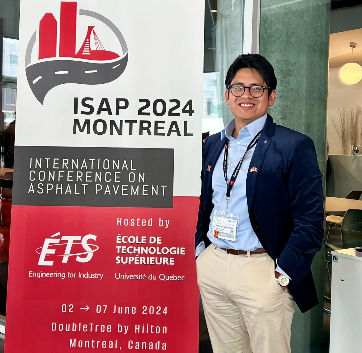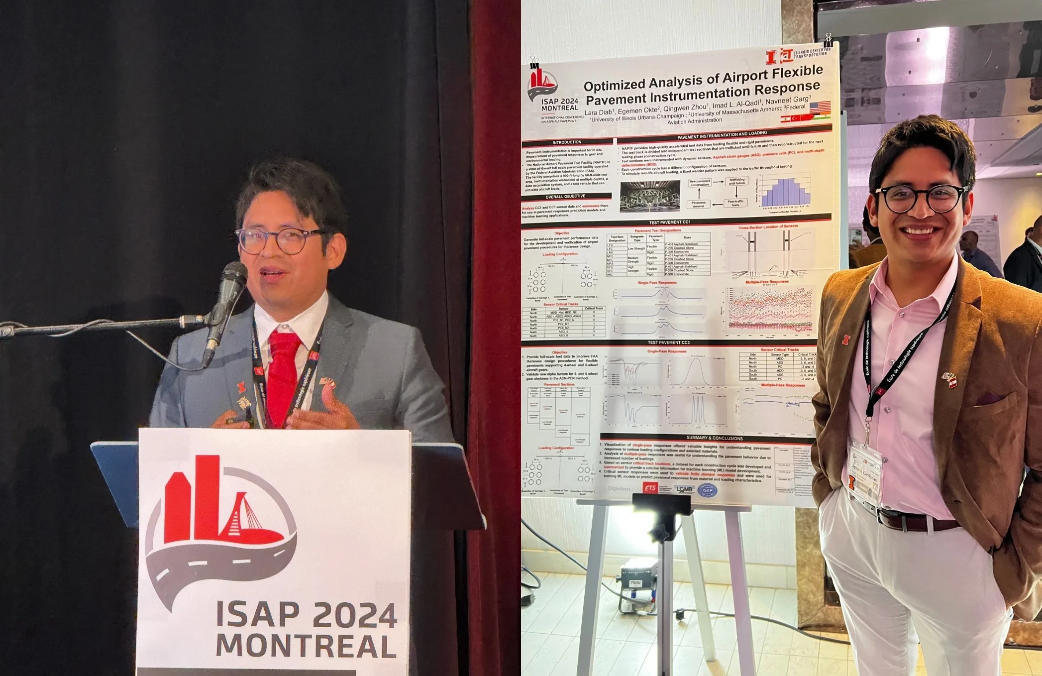 This was my 1st time attending the ISAP conference, and I had heard great things about it from colleagues. The weekend kicked off strong. On Sunday, June 2, we attended the airport workshop at ÉTS, where representatives from both FAA and ICAO presented on airfield pavement design. As someone working in flexible pavement modeling and airfield applications, it was one of those sessions that you just simply cannot miss as it was right up my alley. The workshop provided an overview of the differences between FAA and ICAO design methodologies for airfield pavements and their roadmap for future updates. The picture shown in Figure 1 was taken right at the entrance of the workshop, where we signed in and picked up our badges and conference materials. On Monday morning, Prof. Al-Qadi, one of the keynote speakers, delivered a talk on the future of flexible pavements. Later that same day, I had to help a colleague who couldn't attend the conference by presenting her poster on her behalf, titled: "Optimized Analysis of Airport Flexible Pavement Instrumentation Responses". The poster session was held in a large hall with many attendees, and I had the opportunity to discuss the research with several interested participants. Fortunately, I was already very familiar with the topic because it was part of the R27-203: "Building Machine-Learning-Based Prediction Models for Computationally Efficient Airfield Pavement Analysis" project led by Prof. Al-Qadi.