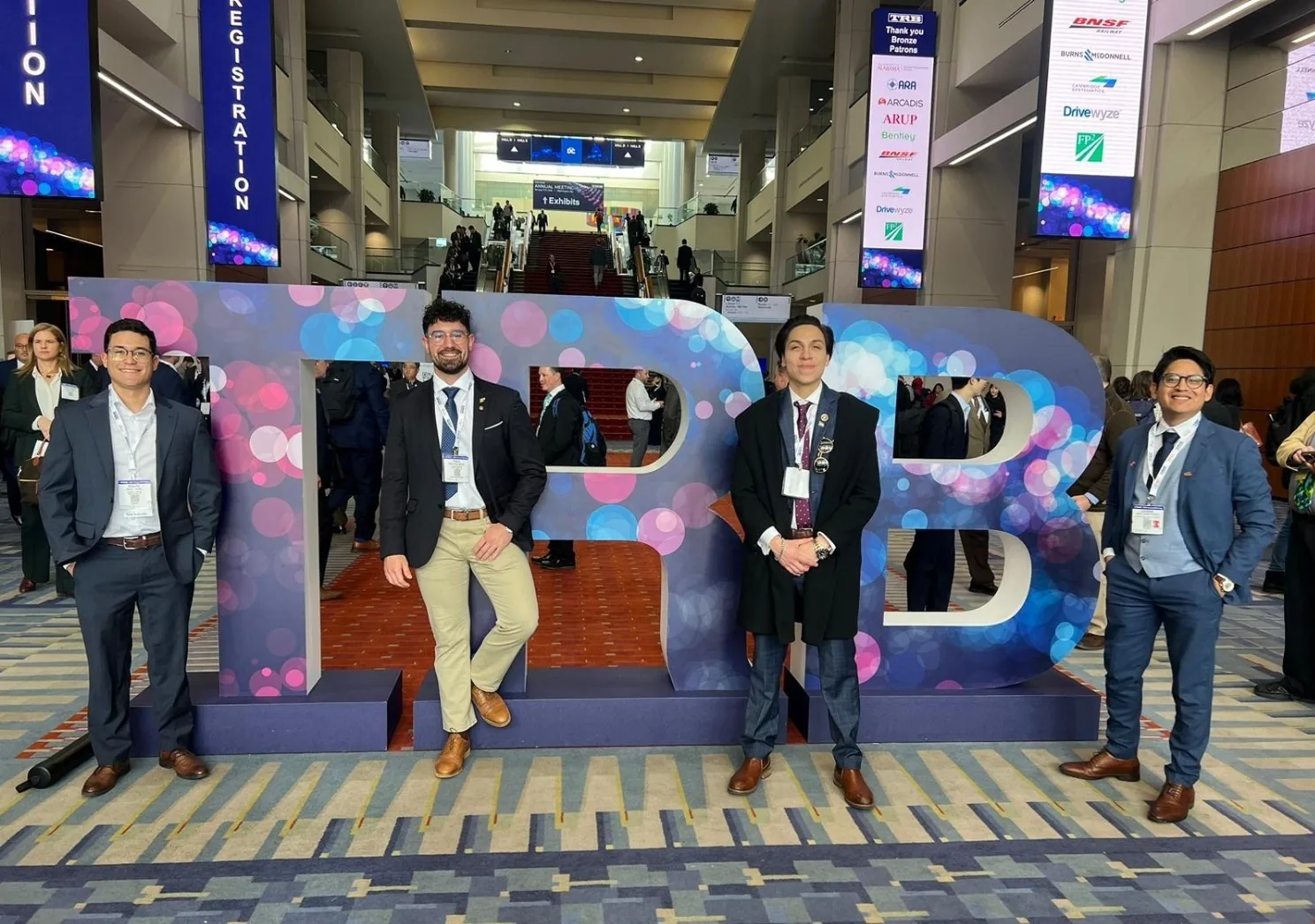 Going into the meeting, this time the goal was to present current work clearly, pressure-test it against expert feedback, and network with other researchers in the field. It is always good to come back with next steps and new ideas to explore. Thanks to Manuel Aspilcueta, another Fulbright grantee from Peru doing his MS in Civil Engineering at Purdue University, I was able to get along with the John E. Haddock Research Group. In Figure 1 (from left to right) are Alberto Castillo, Pablo Orosa, Oscar Moncada, and me (Johann Cardenas) at the TRB 2024 sign, located at the entrance of the Walter E. Washington Convention Center. For some of them, this was their first time attending TRB. As usual, we arrived on Saturday for the APSE meeting, checked in to the hotel, and prepared for the next day.On Sunday, we attended the Exhibit Hall opening and some of the reception events. It was not really a good idea to stay out late the night before presenting (early Monday), but I made it work. While I had planned to carefully rehearse my presentations over the weekend, I ended up improvising most of it on the spot.