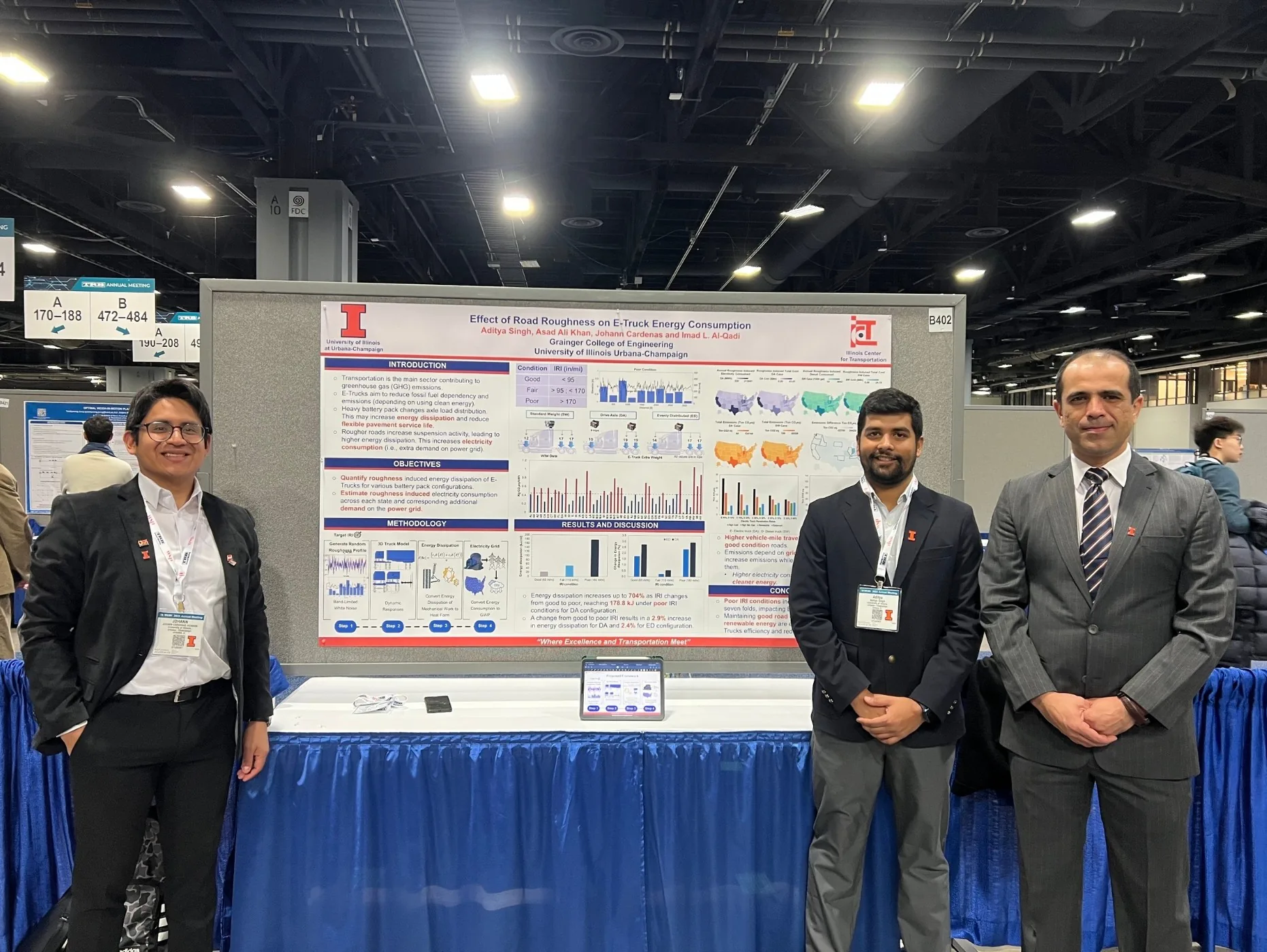 Students, alumni (some now faculty members), and professionals representing ICT and Illinois got together for a group photo at TRB 2025 (Fig 4). It is always great to see familiar faces and connect with the broader ICT community at these events. In this picture, from left to right, we have: Mahsa Tofhighian, Feiyu Huang, Egemen Okte, Yudi Wang, Yihan Chen, Babak Asadi, Aditya Singh, Lara Diab, Namith Gangidi, Asad Khan, me (Johann Cardenas), Alex Sandoval, Prof. Al-Qadi, Qingwen Zhou, Mohammad Fakhredinne, Hao Wang, and William Villamil. When I arrived at ICT in 2021, Qingwen and Egemen were already there as senior PhD students, and they are now faculty members at Wayne University and UMass Amherst, respectively. Hao is a Professor at Rutgers University, and one of the persons I probably cite the most in my research, as he was involved in spearheading some of the earliest research on flexible pavement numerical modeling. I guess some of the new students already look at me as a senior member of the group now!