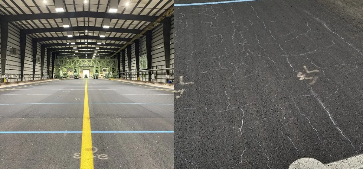 Beyond the trafficking testing, we also got a close look at other ongoing activities, specially how distress progression is monitored. We visite one active effort of crack monitoring on the NAPTF test lanes, and observed rutting evaluation on a visibly failed section. The common ground across both activities was traceability. Every crack was marked, every rut depth measured, and every observation recorded to later be tied back to the loading history and pavement response data.